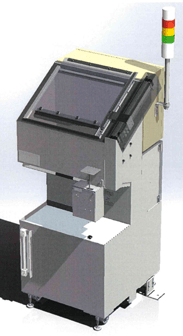 洗浄ワークサイズを 250×250くらい迄とし、装置高さを抑えた設計で、ワークを上から脱着する方式とし、装置巾500と小型で低価格を実現しました。